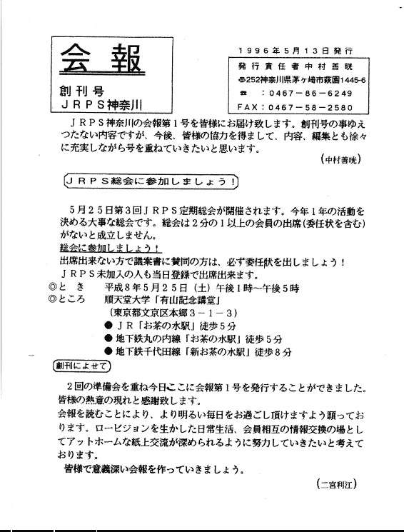 (JRPS神奈川のホームページで過去の会報を読むことができます。)